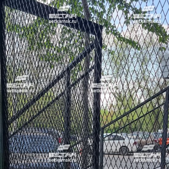 Сетка многократно подкрашивалась, что заметно, так как на сетке перил заметны неровности именно из-за краски. Черный цвет тут уместен, так как он скрывает недочеты грубой прокраски. Сетка за годы эксплуатации показала себя прекрасно – никаких прогибов и деформаций. Антивандальные свойства, характерные для ЦПВС, никуда не деваются со временем.