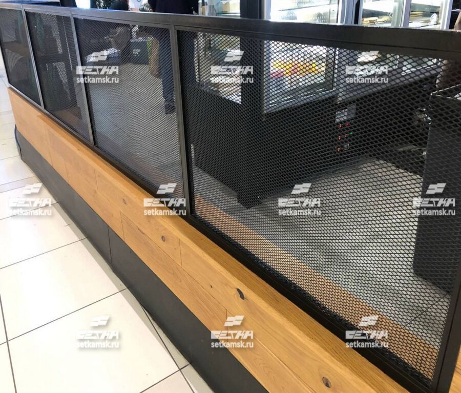 В дизайне можно встретить цельнометаллическую просечно-вытяжную сетку (ЦПВС). Из сетки, например, делают ограждения для корнеров в торговых центрах.