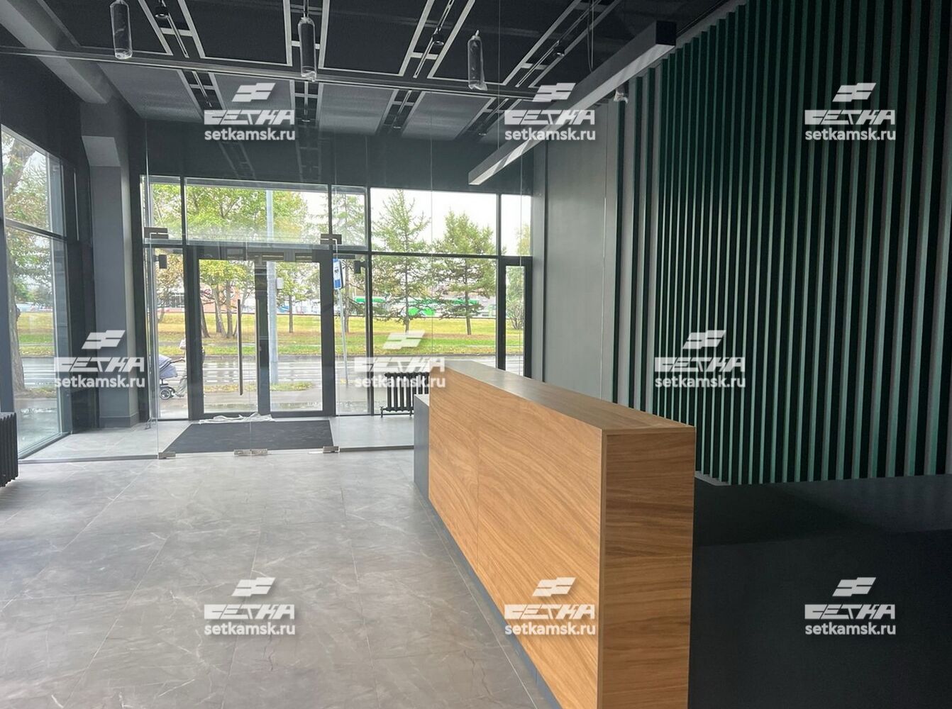 На объекте высокие потолки, но потолок при этом имеет прямые линии, потолок не перегружен коммуникациями. Такие потолки обычно в современных проектах не принято прятать, поэтому сетка не закрывает потолок полностью. Потолочные панели разделяют пространство, делают его более уютным и законченным. Не остается эффекта недоделанного ремонта, нежели в тех случаях, когда потолки оставляют целиком «пустыми».