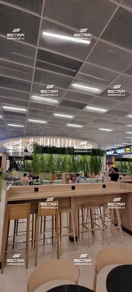 Изготовление и установка потолочных панелей на фудкорте