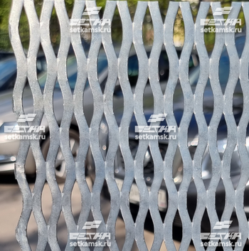 Вальцованная (сплющенная) просечно-вытяжная сетка из оцинкованной стали с ячейкой 40х17 мм (толщина металла 1 мм, шаг подачи 6 мм).