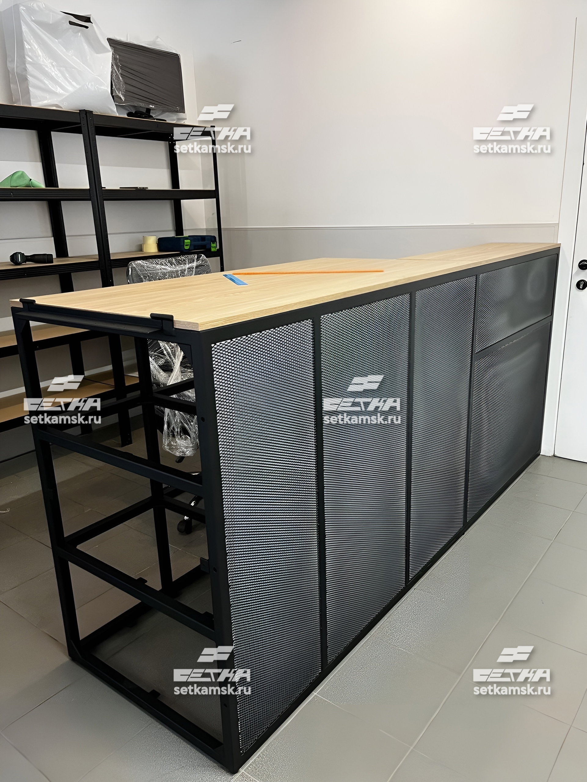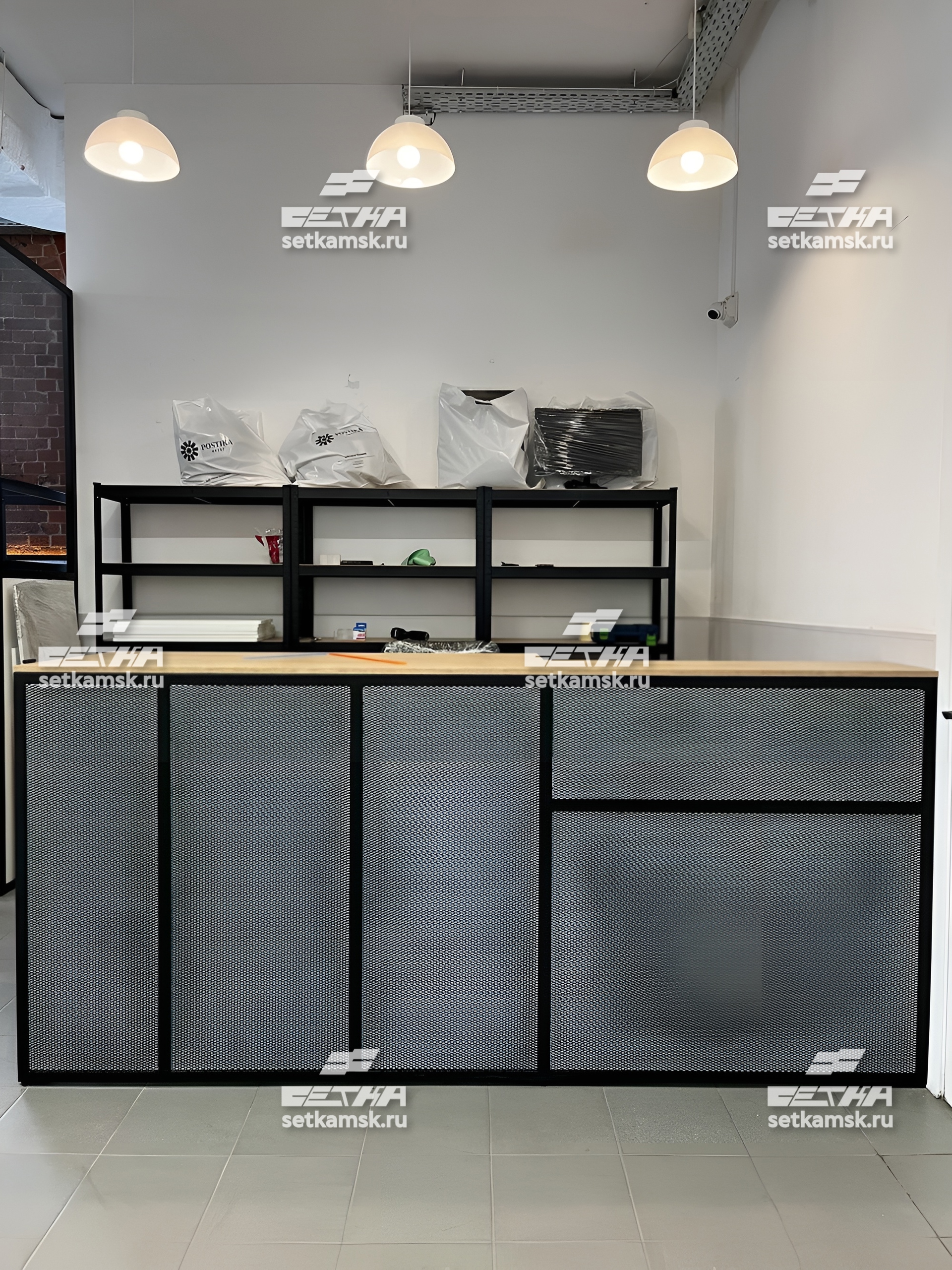 В данном случае мы рассматриваем проект, в котором цельнометаллическая просечно-вытяжная сетка (ЦПВС) использовалась при создании торгового прилавка.